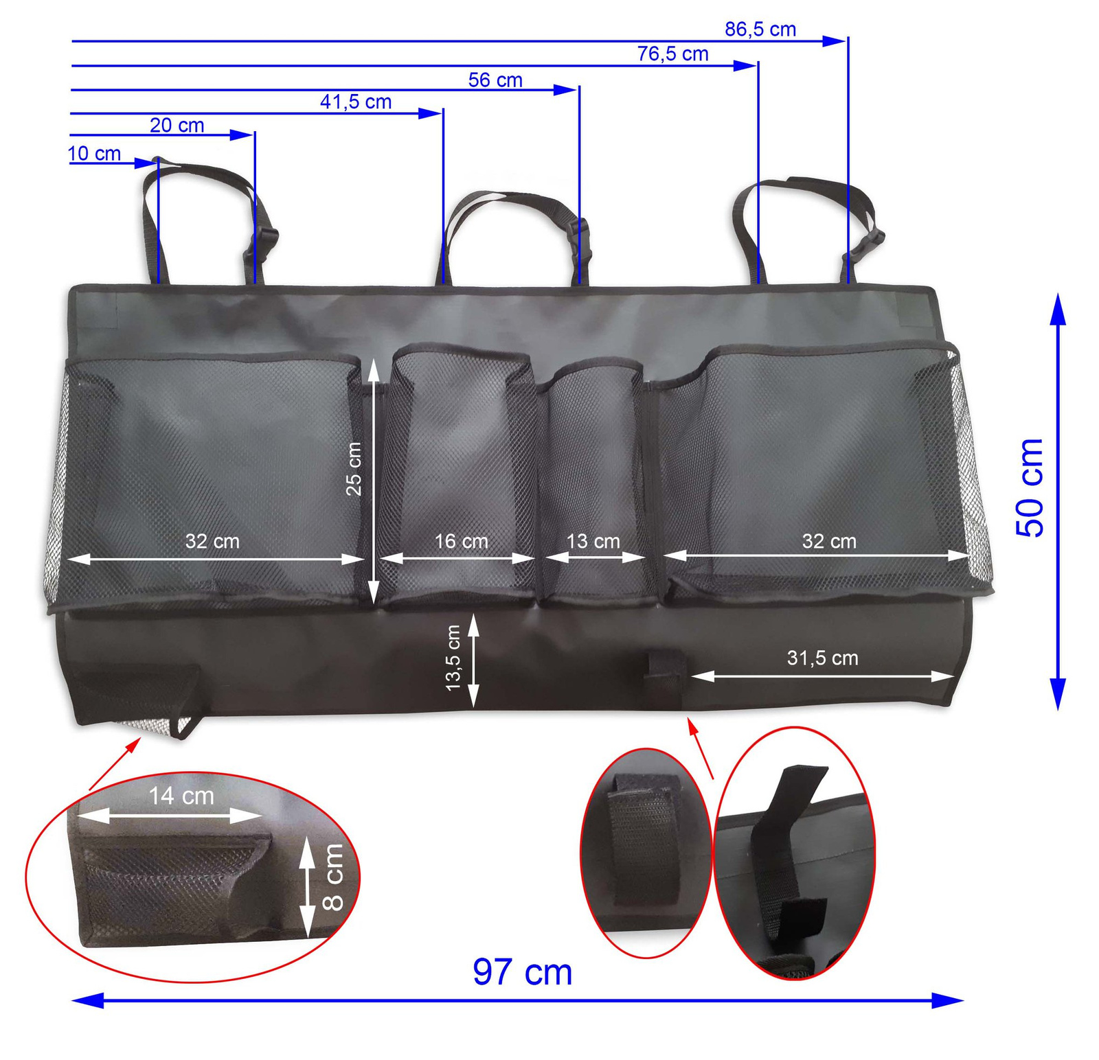 Organizer Do Bagażnika Samochodu Czarny Duży Na Oparcie Siedzenia Suvy Van